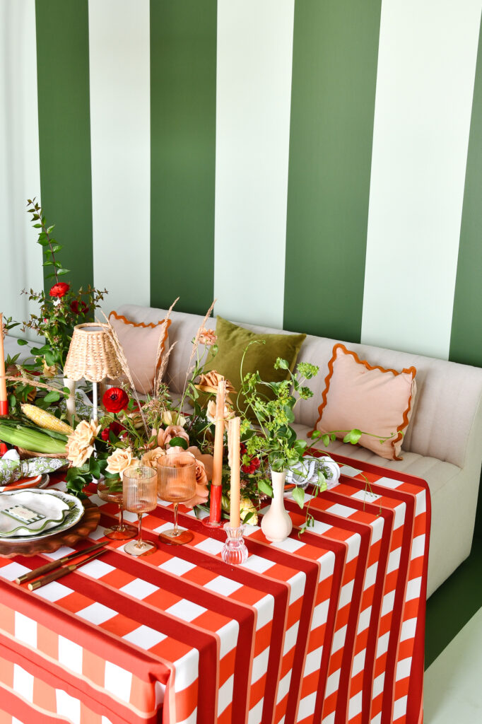 We ordered in some fun floral and our team curated two perfect palettes to suit the vision and built these stunning designs! Lauren and Rachel filled the table with styled produce and taper candles and the rest is history.