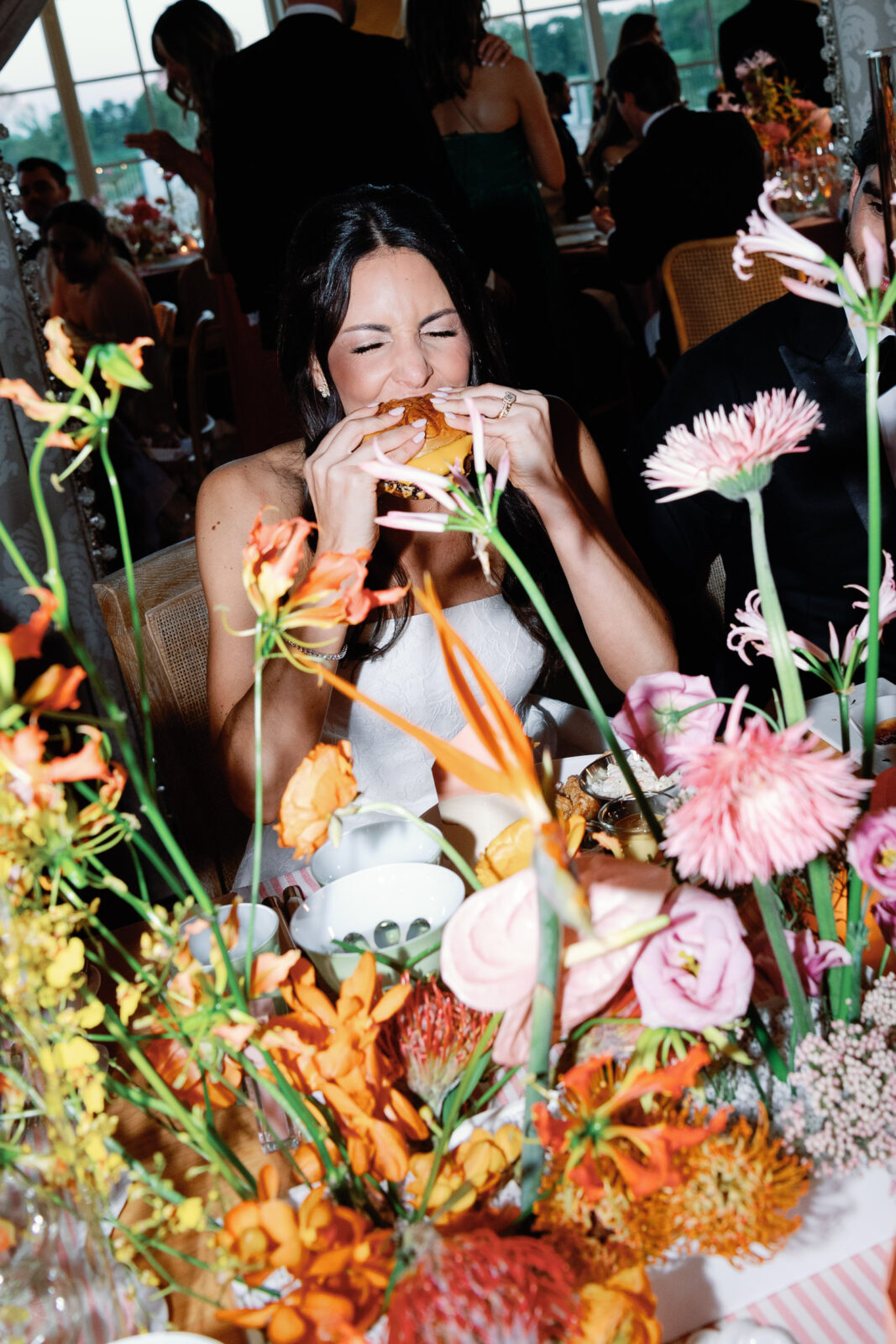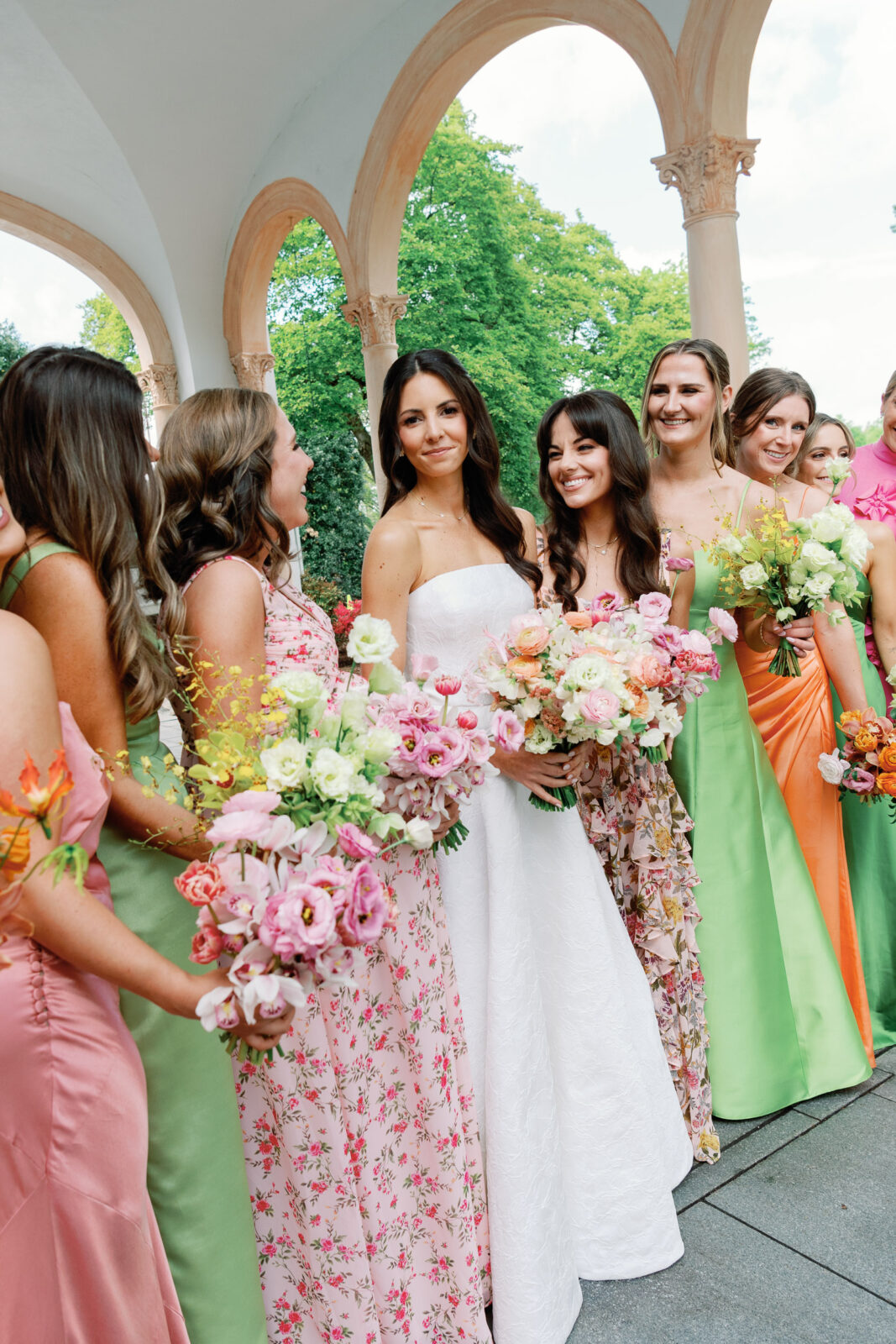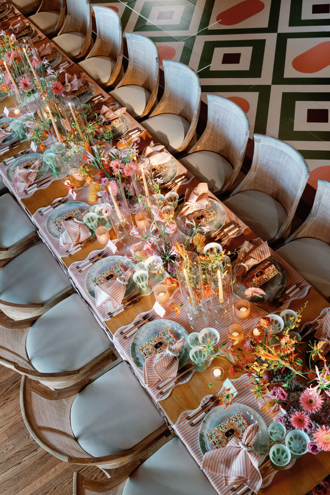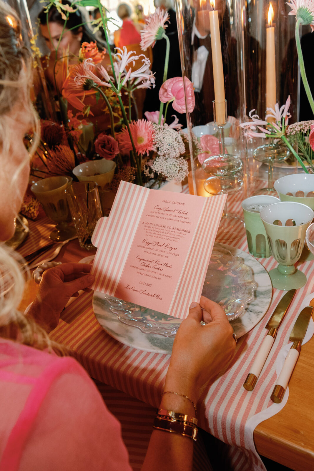 The kindest couple and the most fun vendor team and a colorful dreamy design that was a BLAST to implement! Loved the big focus on bold pinks, oranges, and greens for this amazing celebration. Special attention paid to the seating chart, photo moment –– a full interactive installation with each design choice holding meaning. The bouquets coordinating with dresses, the tables spilling with orchids and anthurium in the MOST fun way.