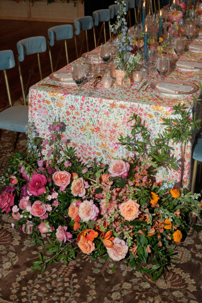 An absolutely stunning wedding for the kindest couple! A lush collection of colorful bouquets, a dramatic ceremony aisle and grounded ceremony meadow risen on a petite stage, a charming indoor/outdoor cocktail hour and a beautifully draped reception transformation of the country club ballroom complete with a dramatically risen head table installation. Loved working on this beautiful design with Sarah Kazemburg and team!